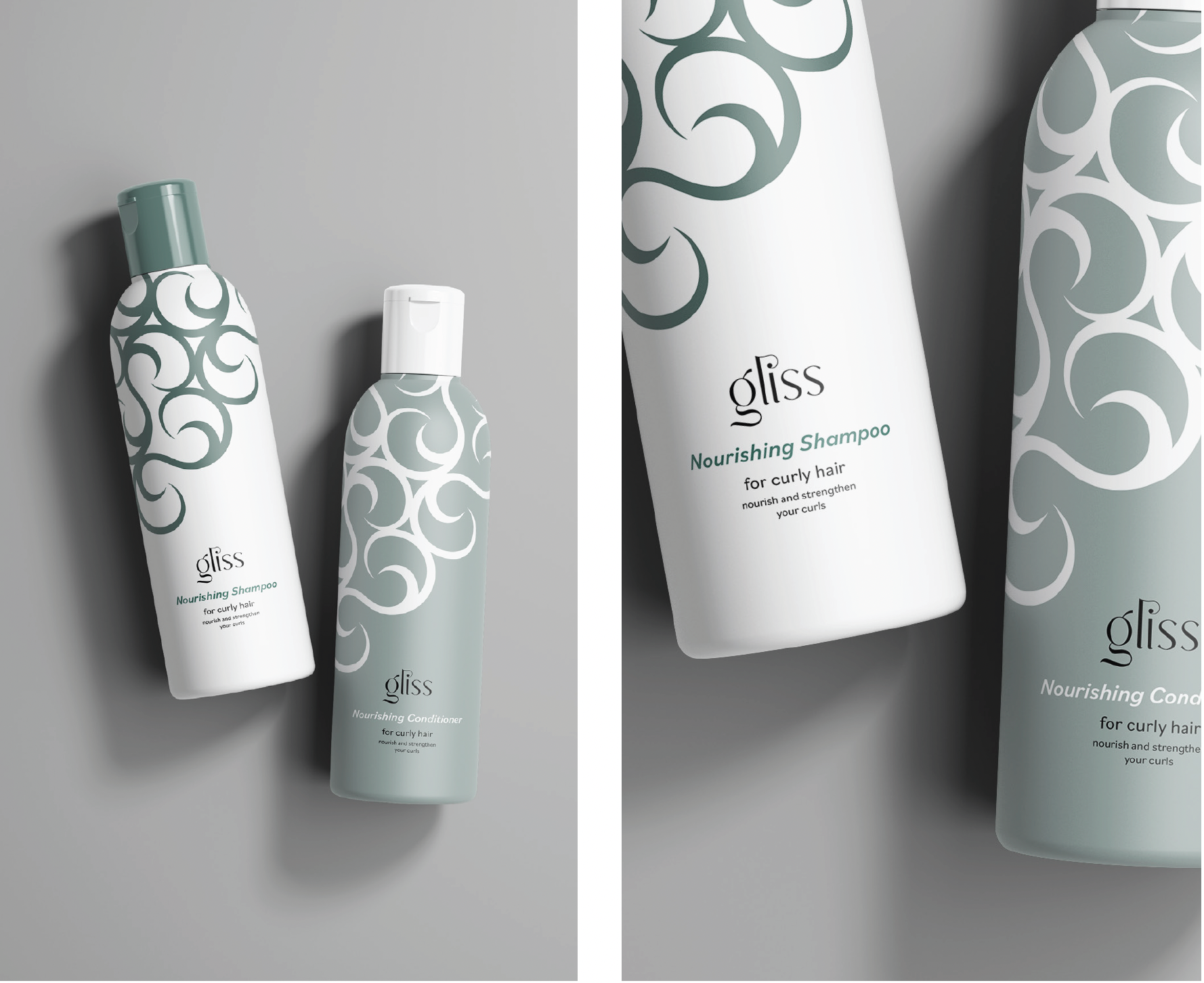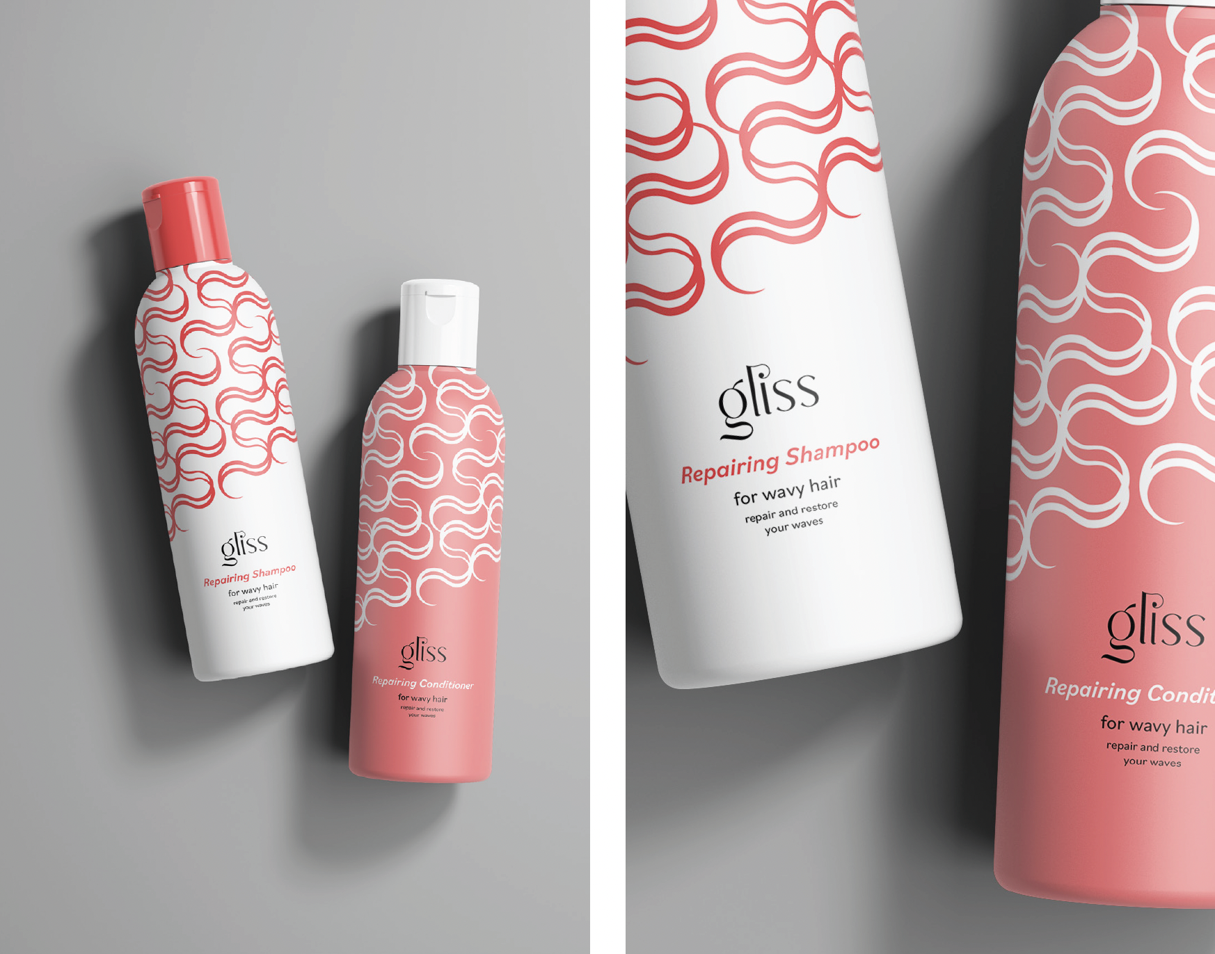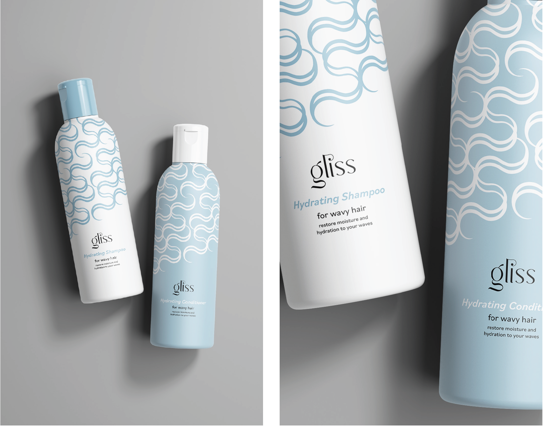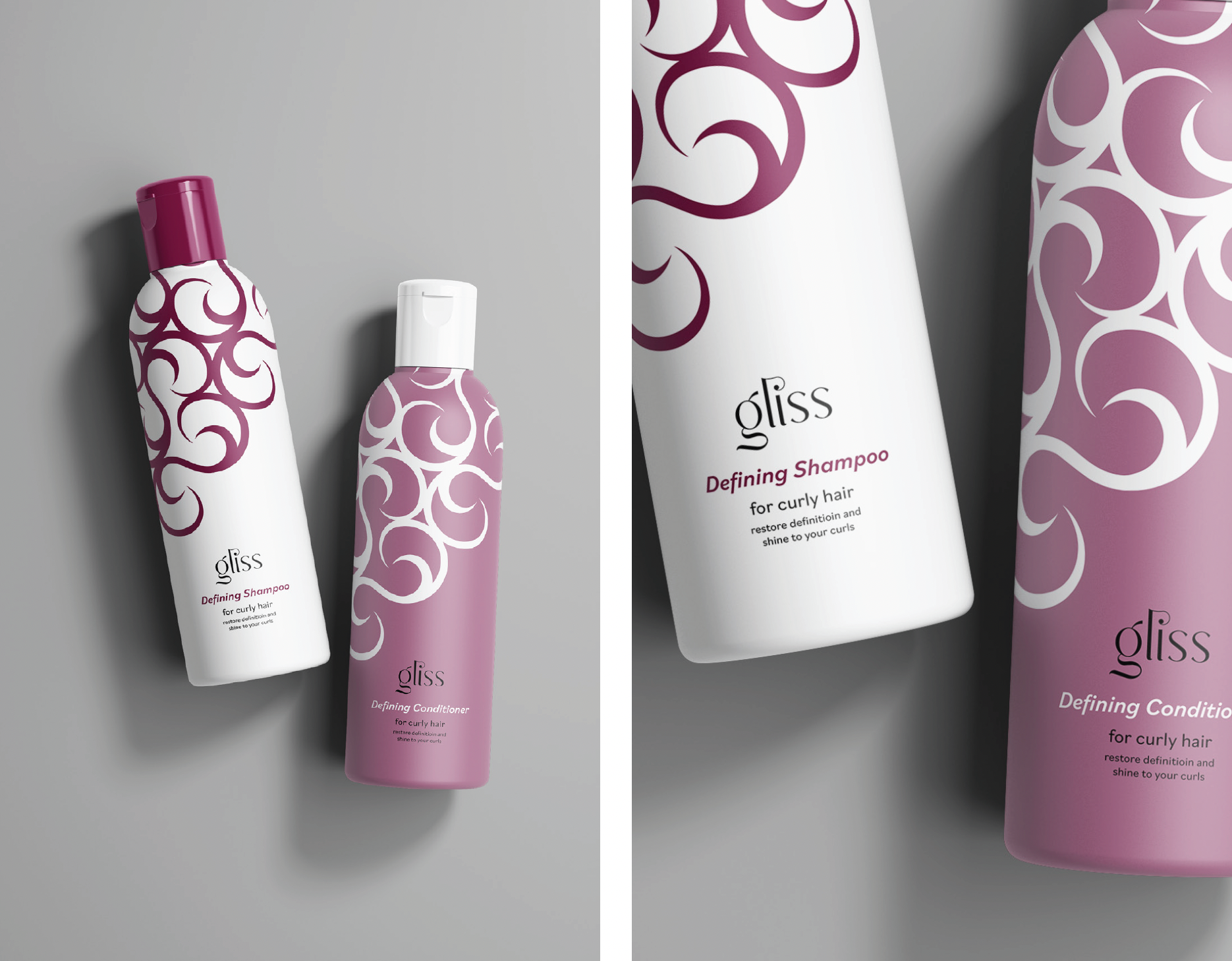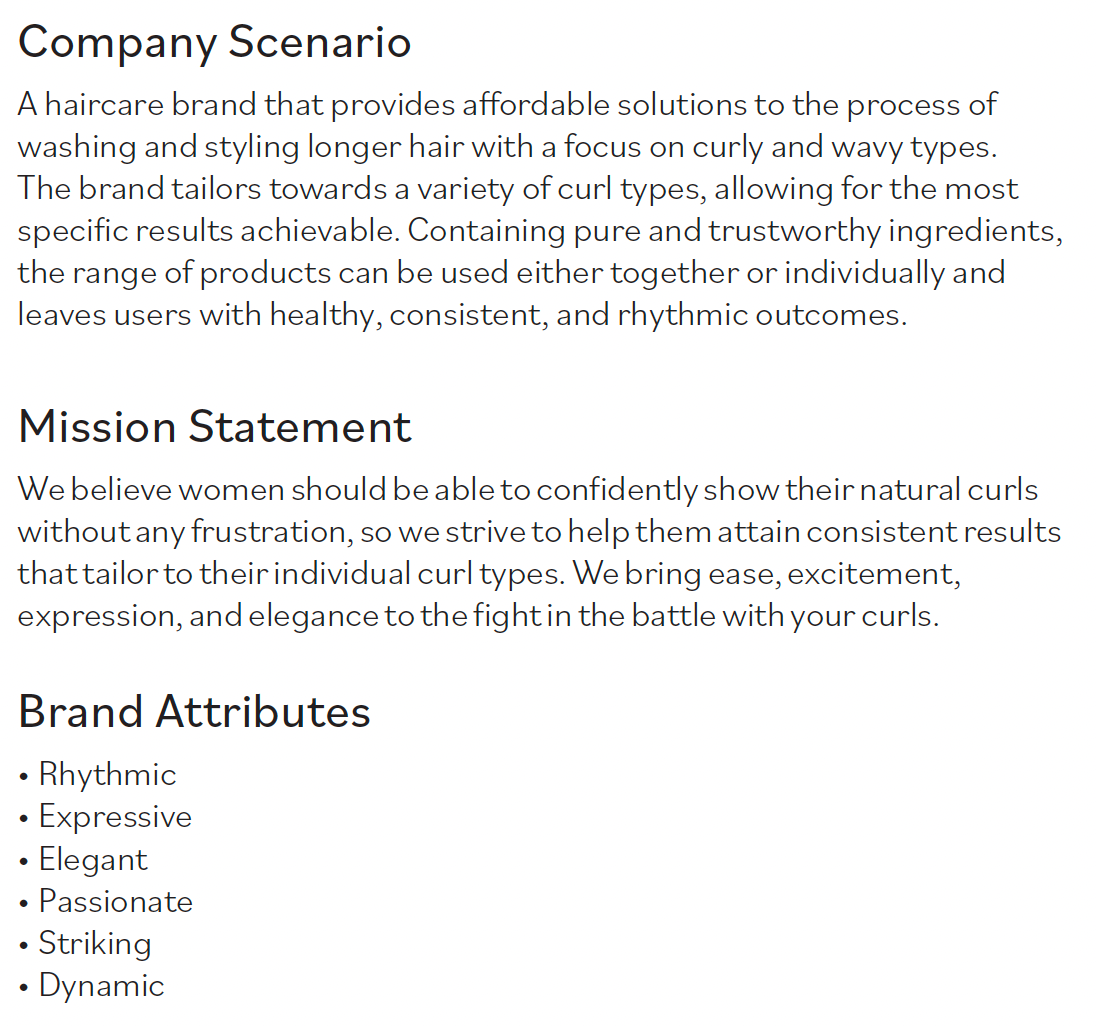 A visual identify for a haircare brand that provides solutions to the process of washing and styling curly and wavy hair, allowing for specific results.