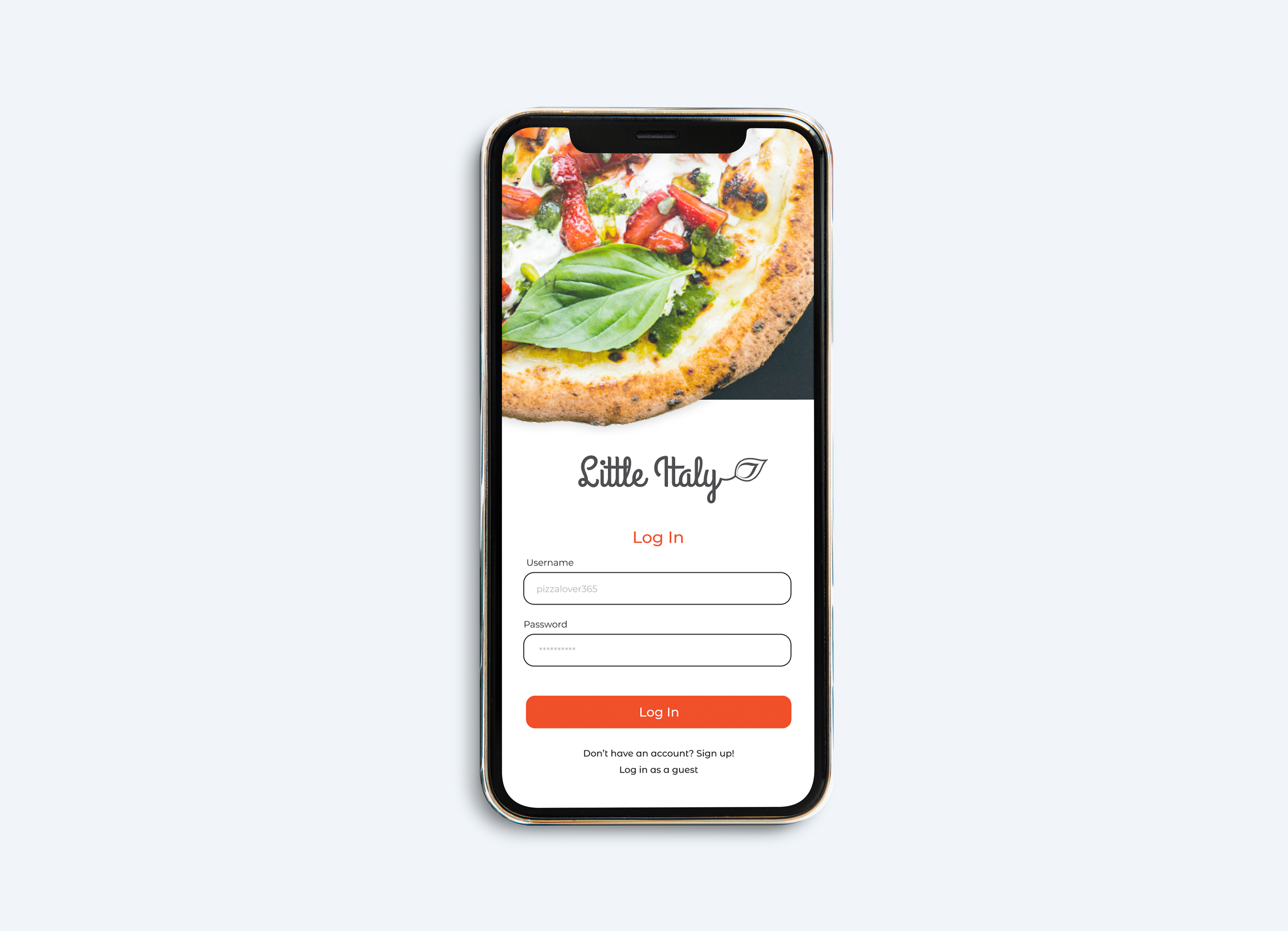 A simple mobile app designed for pizza take-out and delivery.